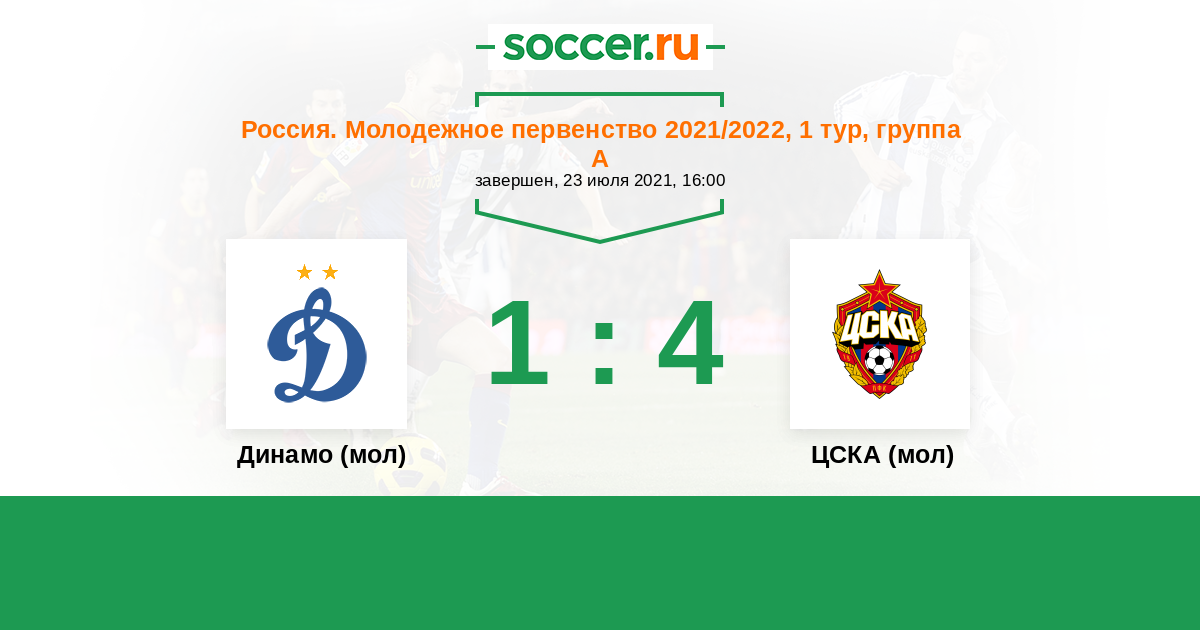 Россия. Премьер-Лига U21 22.10.2021 ЦСКА (мол) Логотип футбольный клуб ЦСКА (мол) (Москва) 1:3 Логотип футбольный клуб Динамо (мол) (Москва) Динамо (мол)