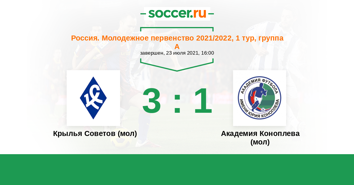 История матча Крылья Советов (мол) против Академия Коноплева (мол)