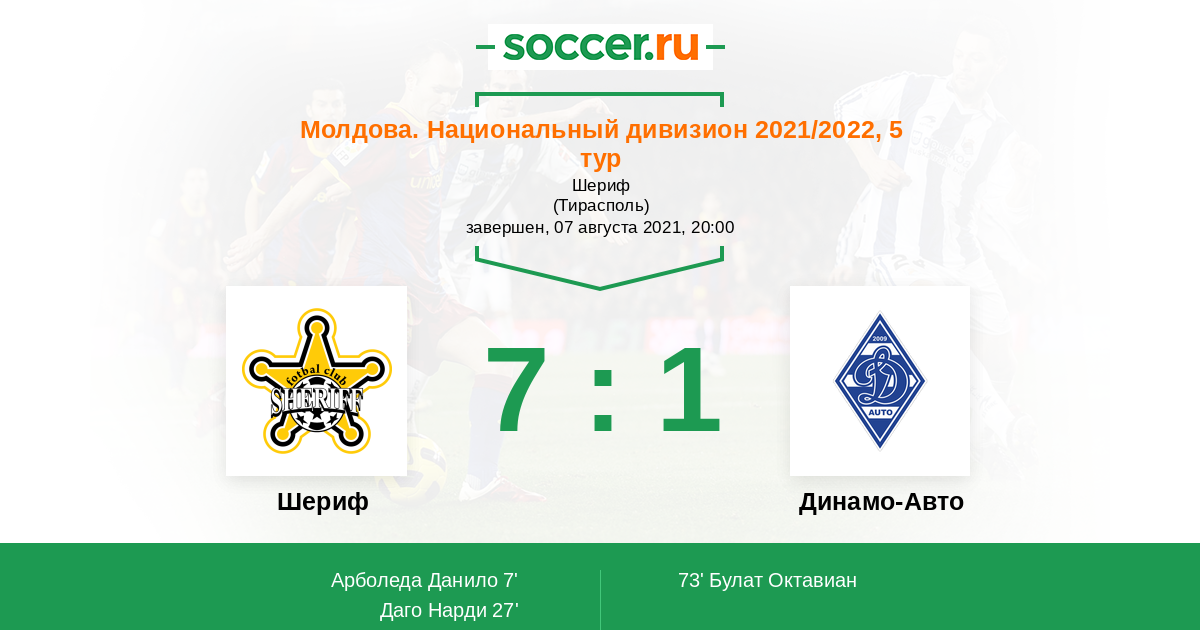 Протокол матча Шериф против Динамо-Авто