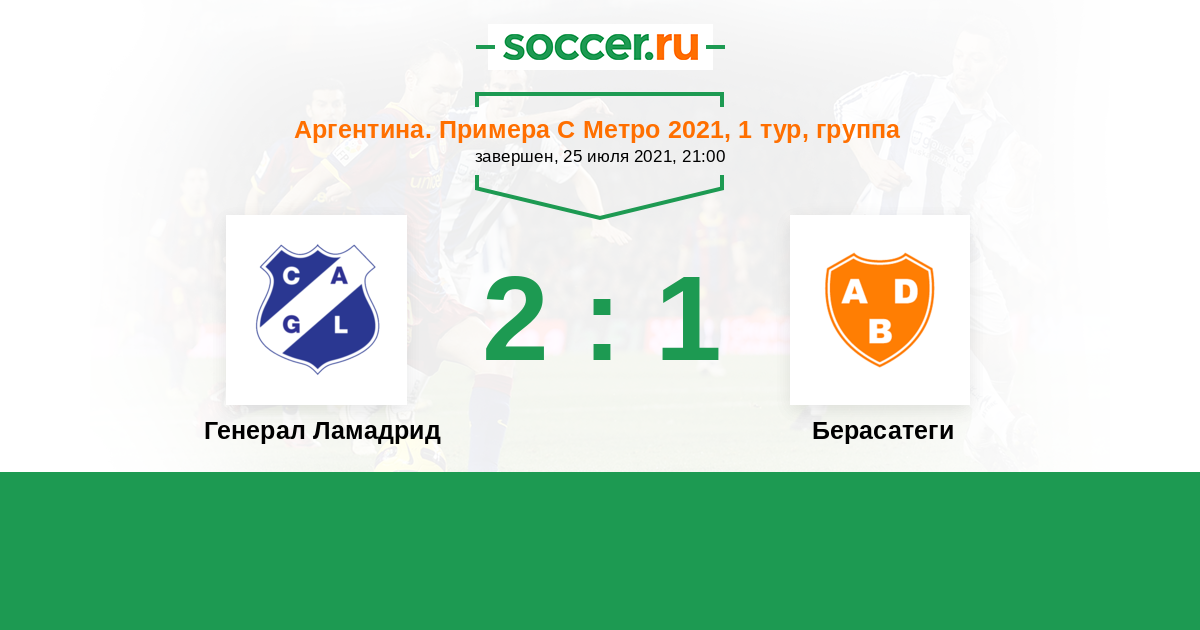 Аргентина. Примера С Метро 30.08.2014 Генерал Ламадрид Логотип Генерал Ламадрид (Буэнос-Айрес) 1:1 Логотип футбольный клуб Берасатеги (Буэнос-Айрес) Берасатеги