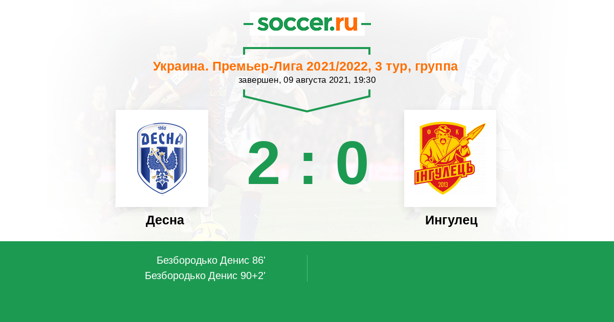 Протокол матча Десна против Ингулец