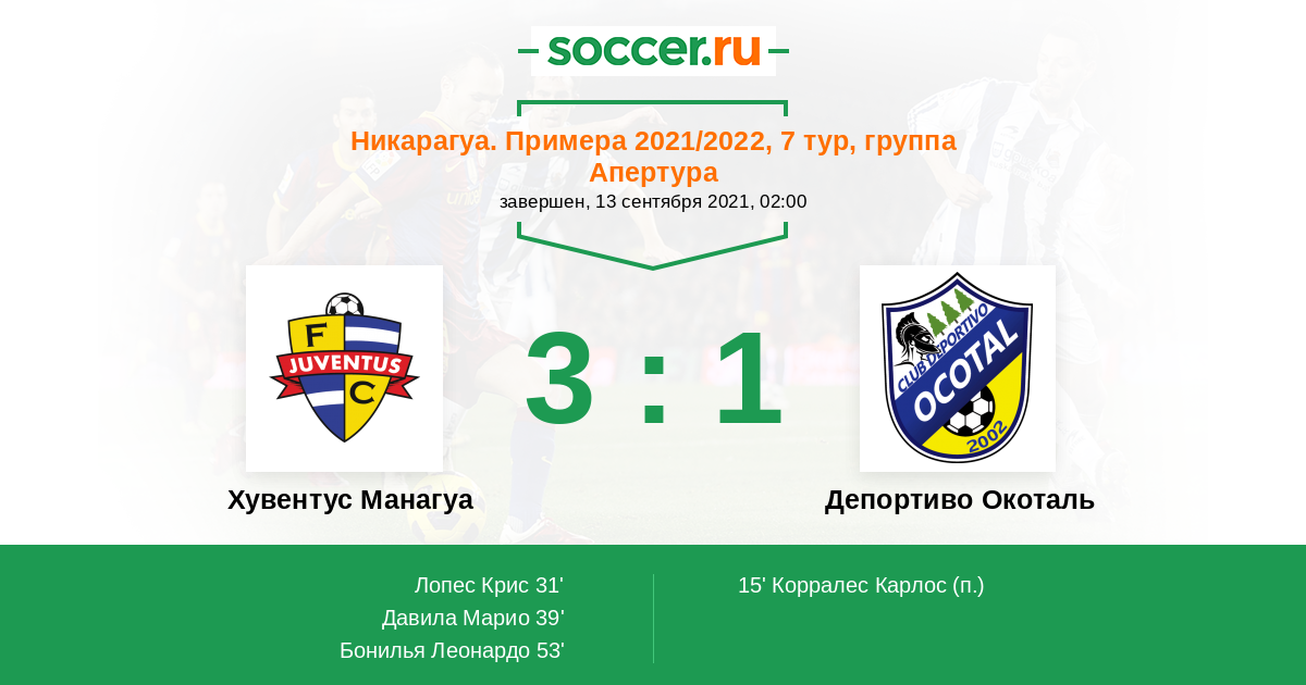 Протокол матча Хувентус Манагуа против Депортиво Окоталь