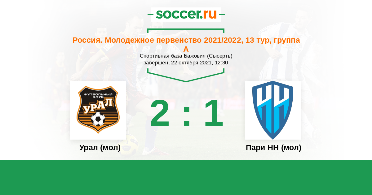 История матча Урал (мол) против Пари НН (мол)