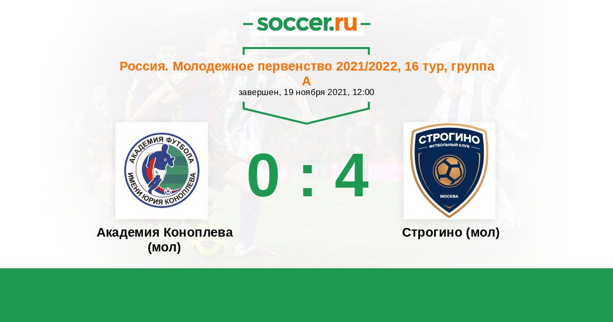 История матча Академия Коноплева (мол) против Строгино (мол)
