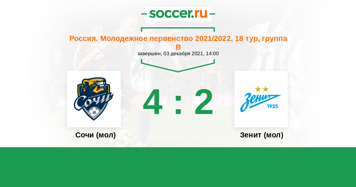 История матча Сочи (мол) против Зенит (мол)