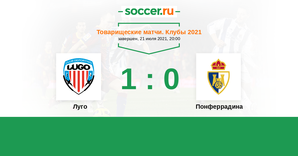 Товарищеские матчи. Клубы 10.08.2016 Луго Логотип футбольный клуб Луго 2:1 Логотип футбольный клуб Понферрадина Понферрадина