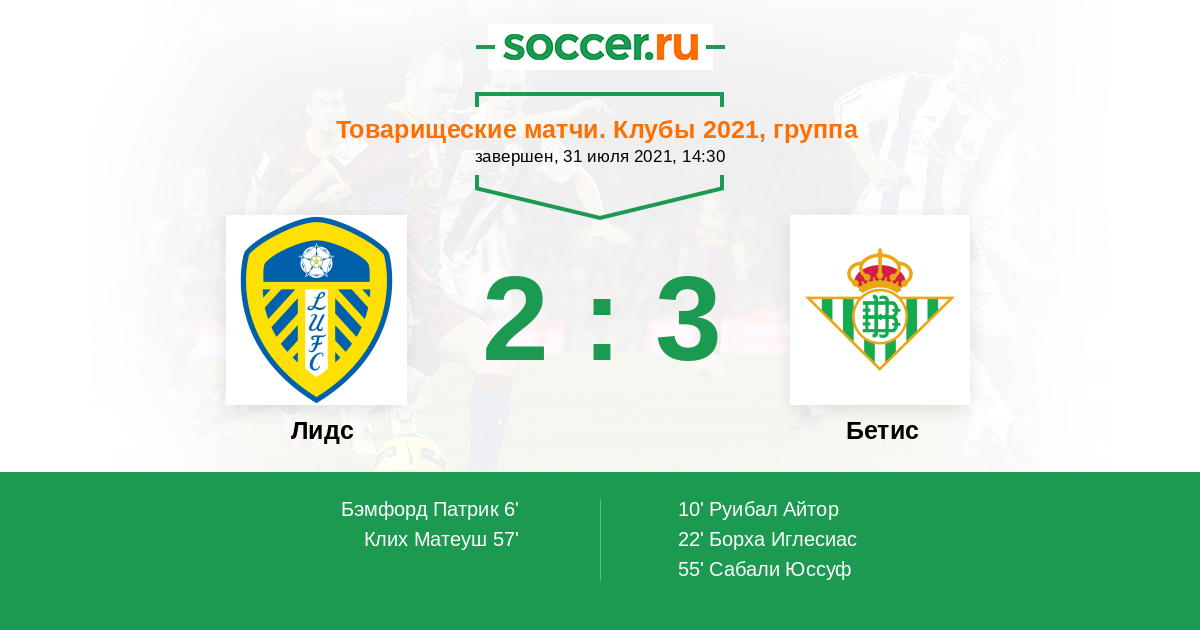 Протокол матча Лидс против Бетис