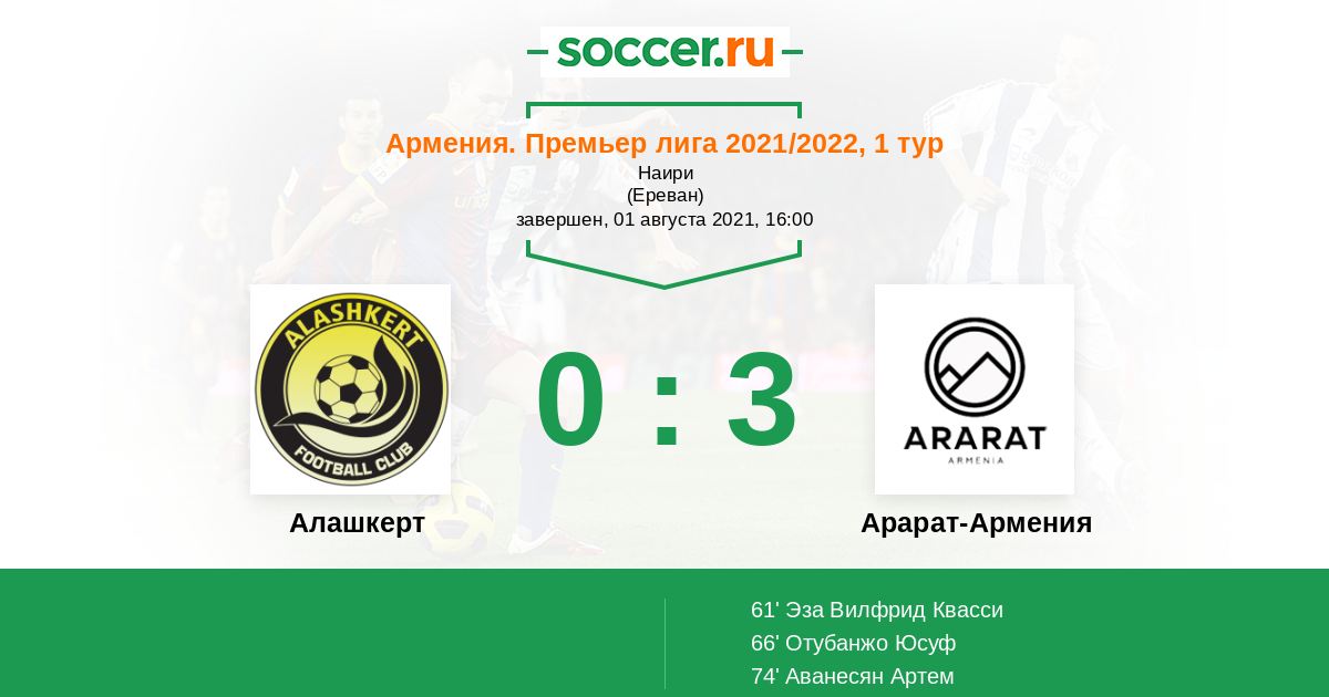 Протокол матча Алашкерт против Арарат-Армения