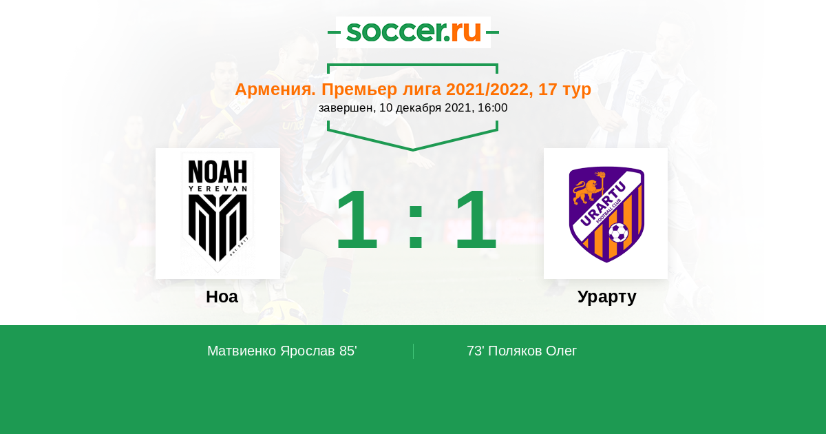 Протокол матча Ноа против Урарту