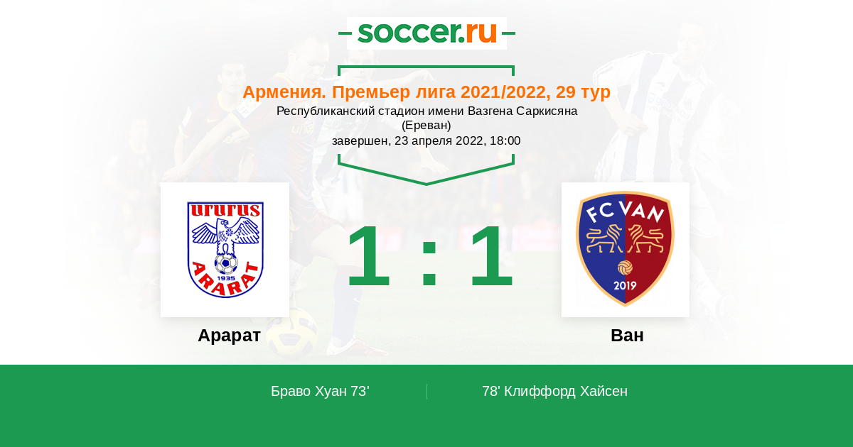 Протокол матча Арарат против Ван