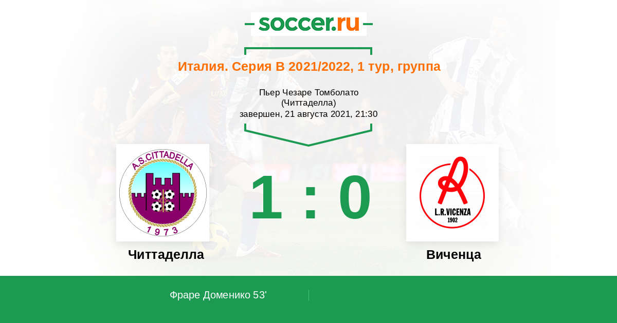 53' (1:0) Фраре Доменико (15) (Вита Алессио (16))