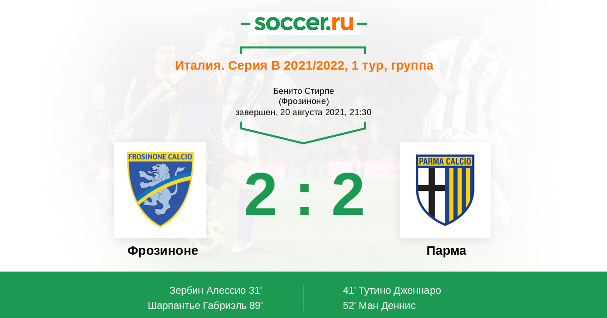 Протокол матча Фрозиноне против Парма