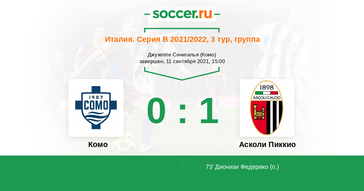 Протокол матча Комо против Асколи Пиккио