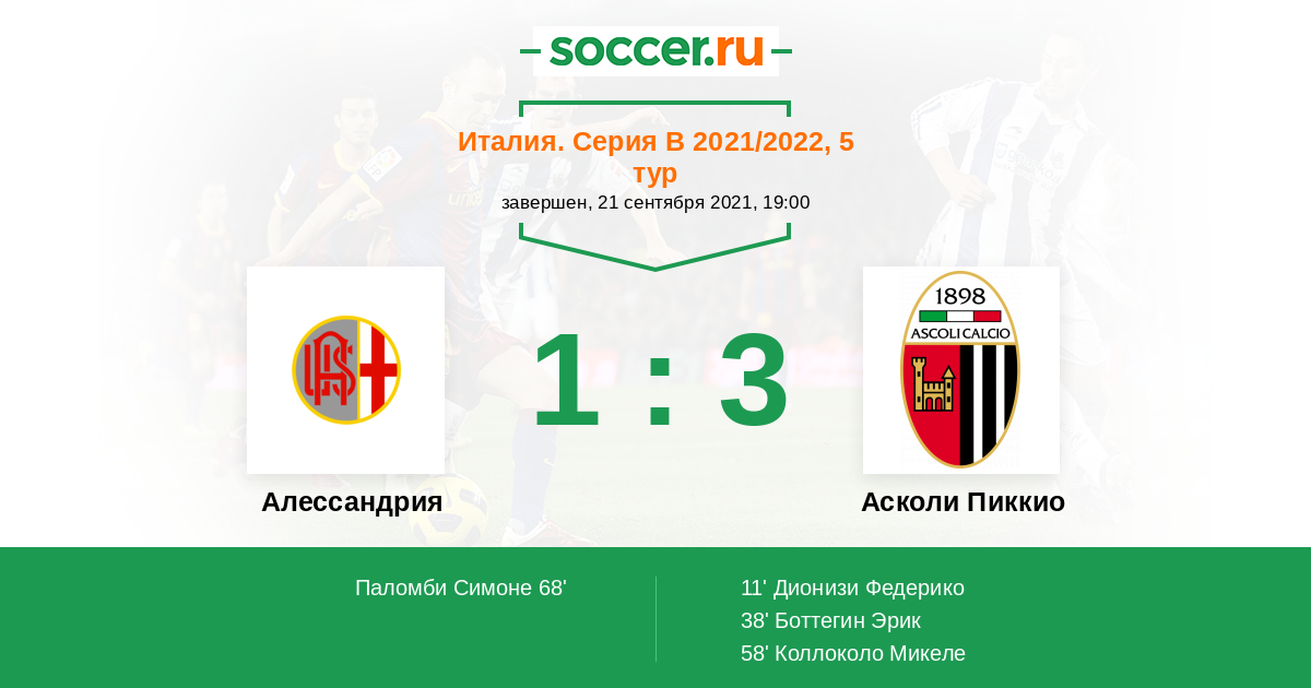 11' (0:1) Дионизи Федерико (9) (Калигара Фабрицио (32))