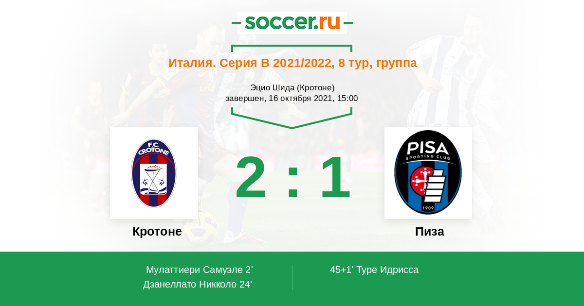 Протокол матча Кротоне против Пиза