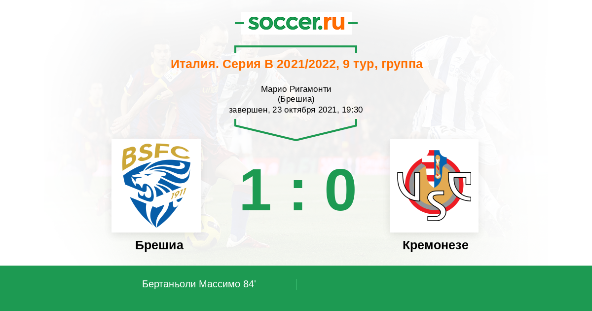 Протокол матча Брешиа против Кремонезе