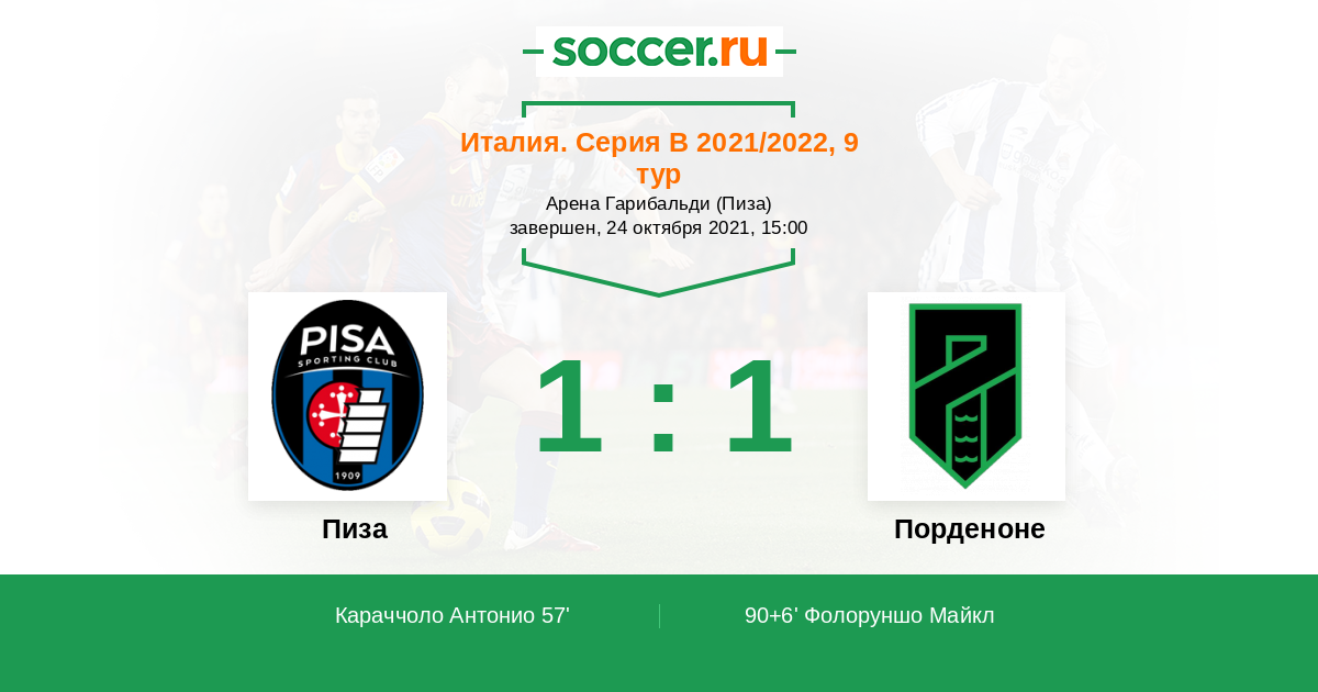 57' (1:0) Караччоло Антонио (4) (Беруатто Пьетро (20))