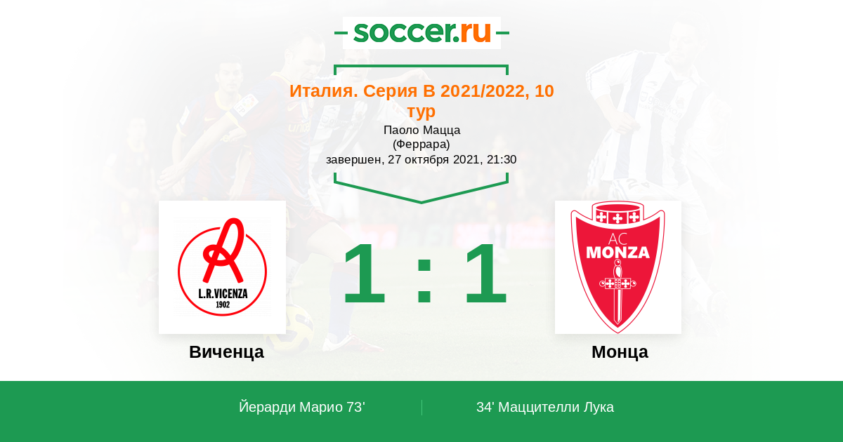 Протокол матча Виченца против Монца