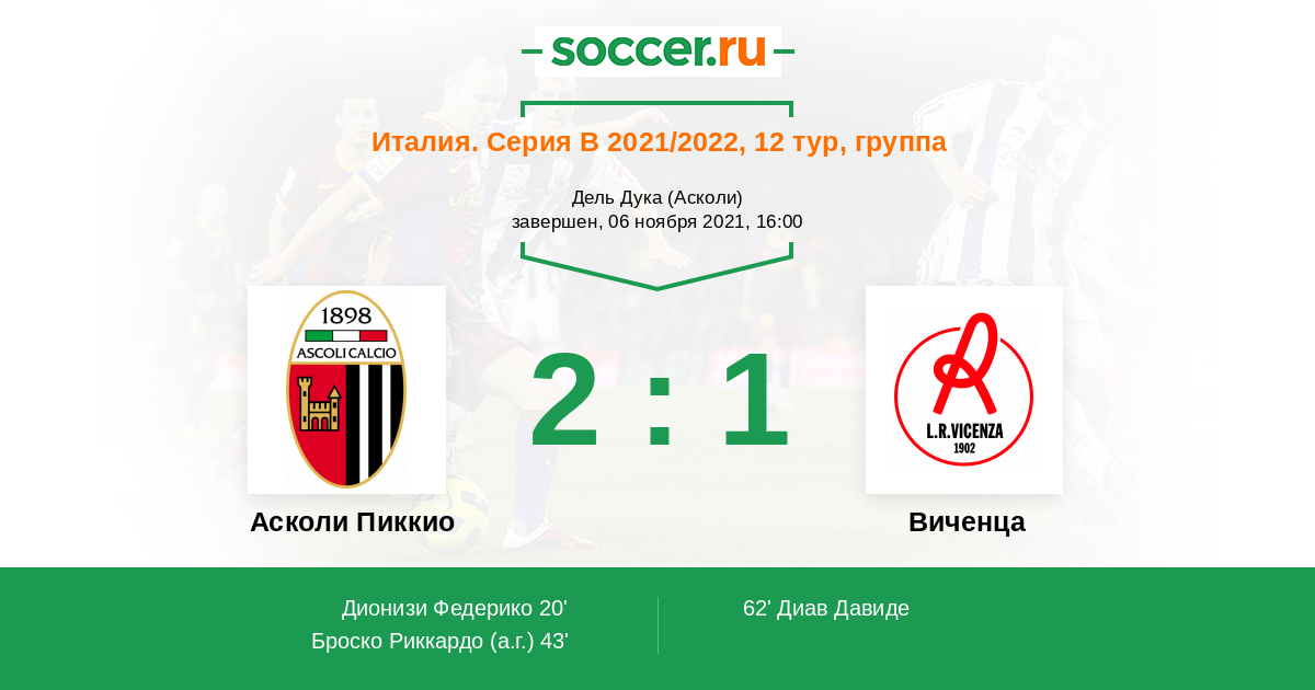 20' (1:0) Дионизи Федерико (9) (Сальви Алессандро (2))