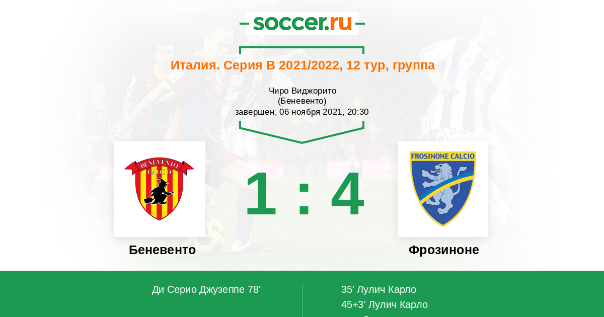 Протокол матча Беневенто против Фрозиноне