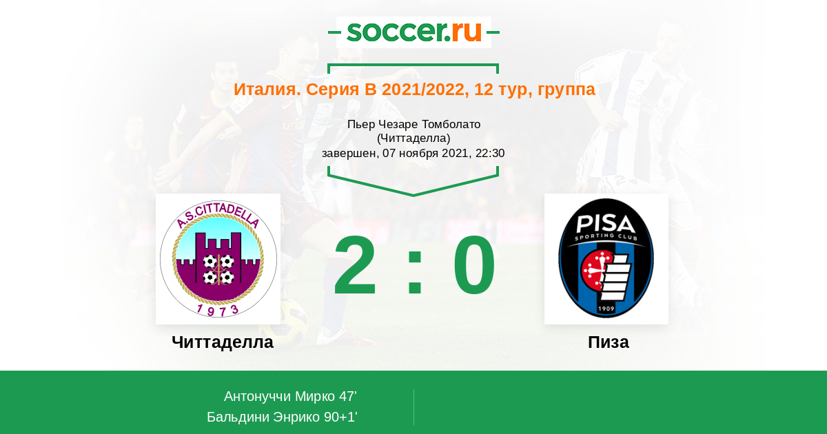 Протокол матча Читтаделла против Пиза