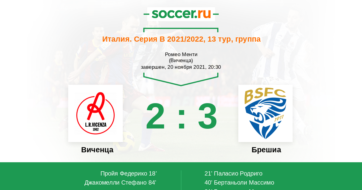 18' (1:0) Пройя Федерико (8) (Даль Монте Никола (34))