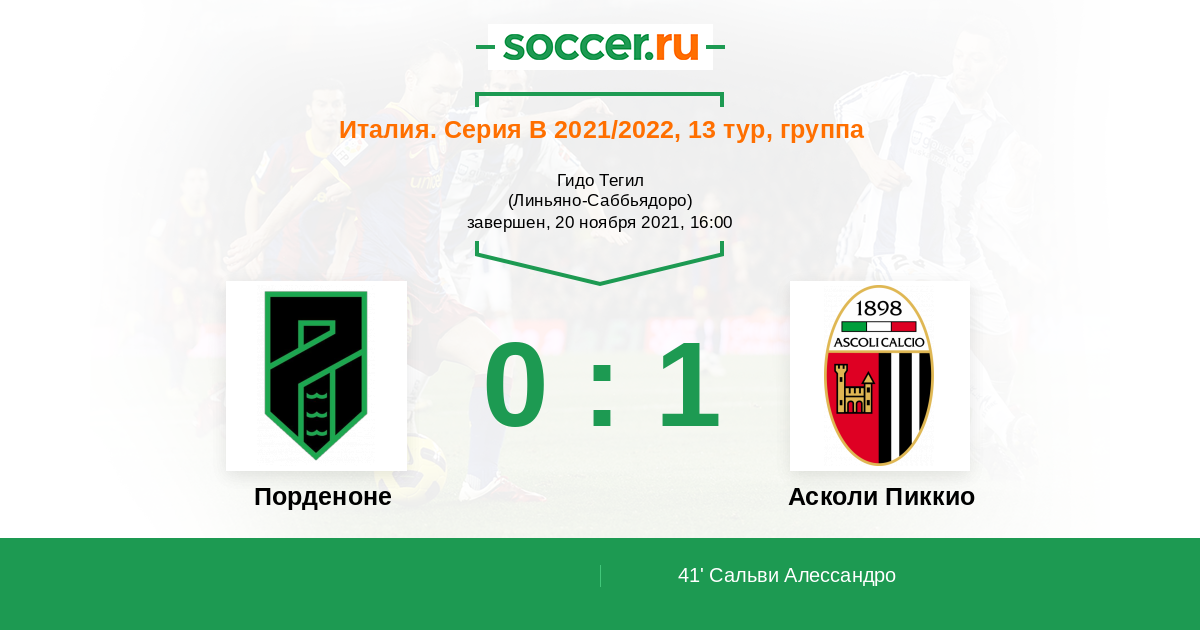 Протокол матча Порденоне против Асколи Пиккио