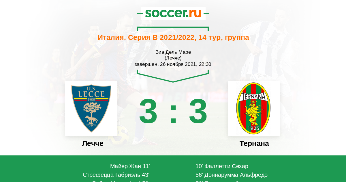 Протокол матча Лечче против Тернана