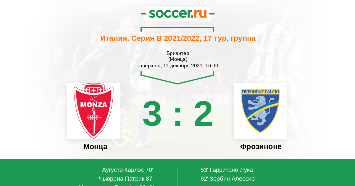 Протокол матча Монца против Фрозиноне
