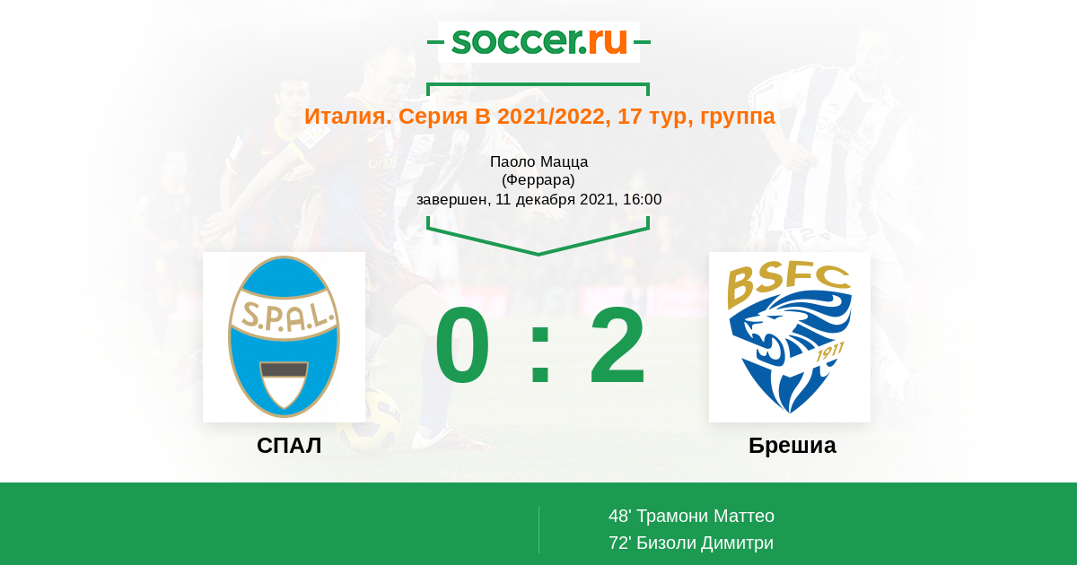 Брешиа в этом сезоне очень уверенно побеждает на выезде и им похоже лучше играть в гостях, чем дома, команда в группе лидеров. СПАЛ находится в нижней части турнирной таблицы. Фаворитом следует признать Брешию.