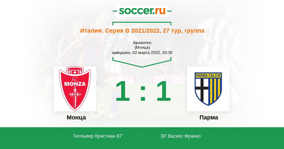 Протокол матча Монца против Парма
