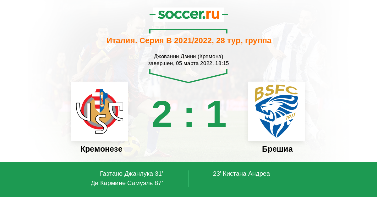 Протокол матча Кремонезе против Брешиа