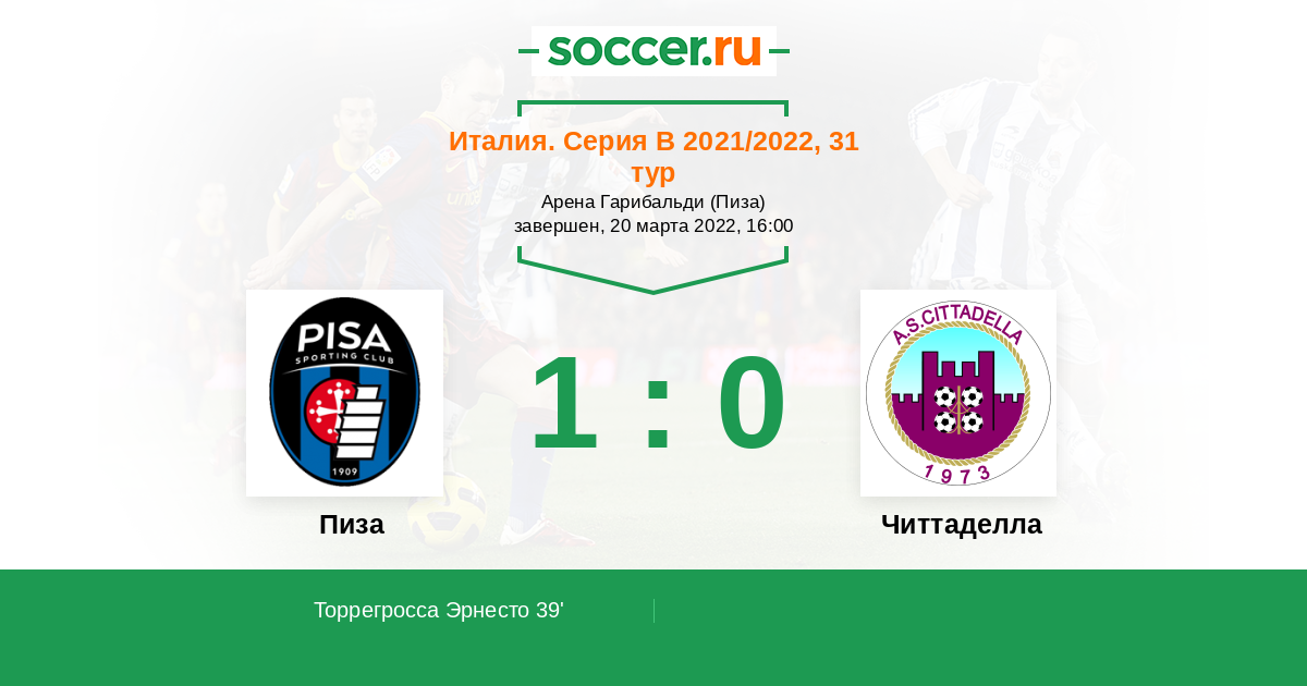Протокол матча Пиза против Читтаделла