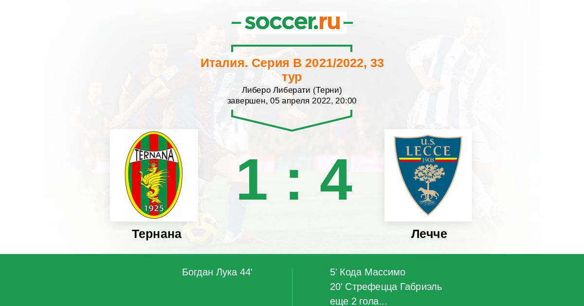 44' (1:2) Богдан Лука (26) (Палумбо Антонио (5))