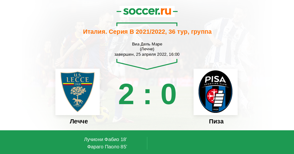 18' (1:0) Лучиони Фабио (5) (Кода Массимо (9))