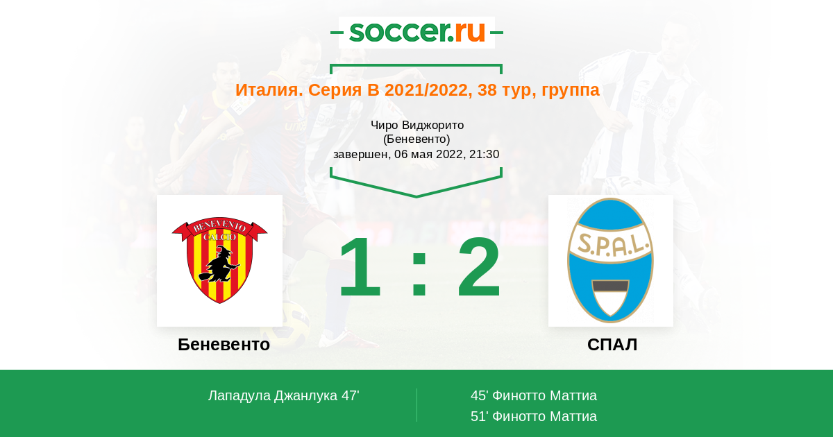 51' (1:2) Финотто Маттиа (18) (Пинато Марко (32))