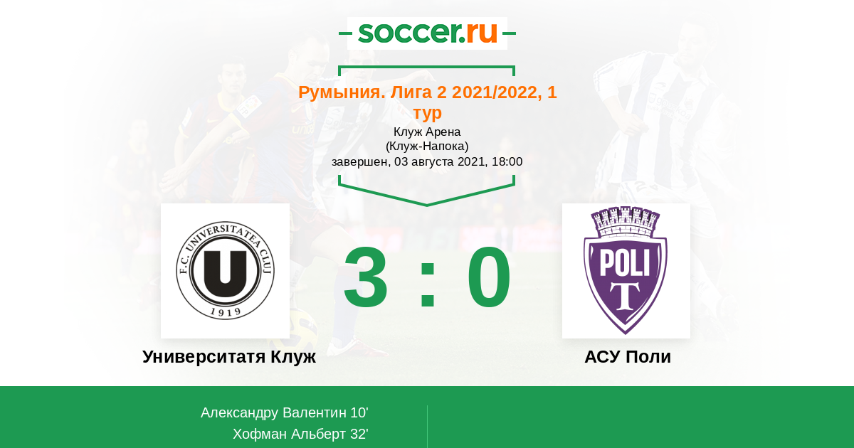 Протокол матча Университатя Клуж против АСУ Поли