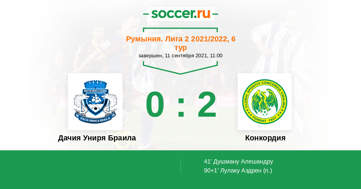 Протокол матча Дачия Униря Браила против Конкордия