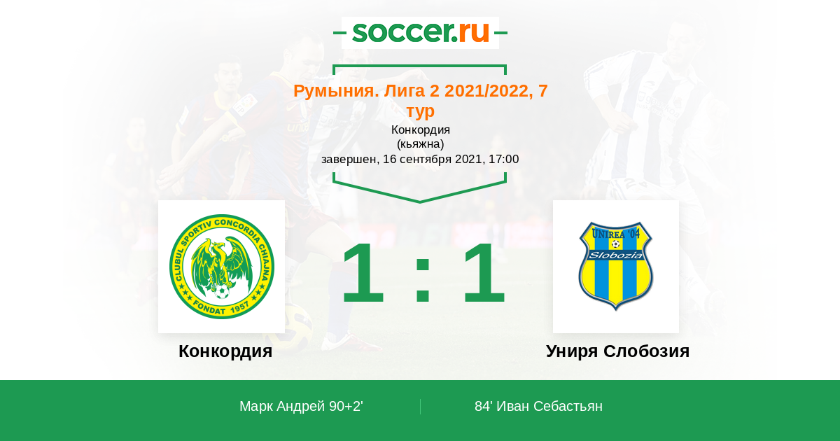 Протокол матча Конкордия против Униря Слобозия