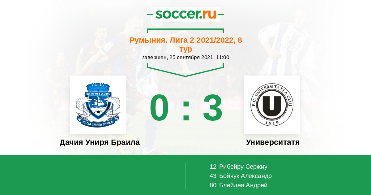Протокол матча Дачия Униря Браила против Университатя Клуж