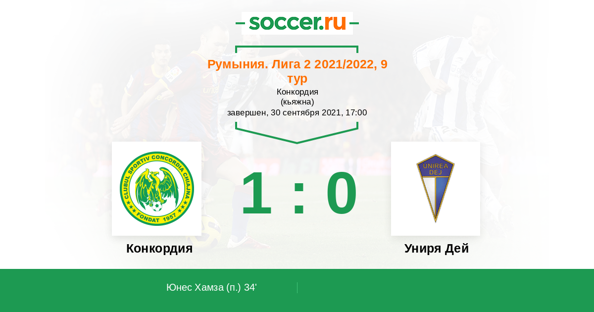 Протокол матча Конкордия против Униря Дей