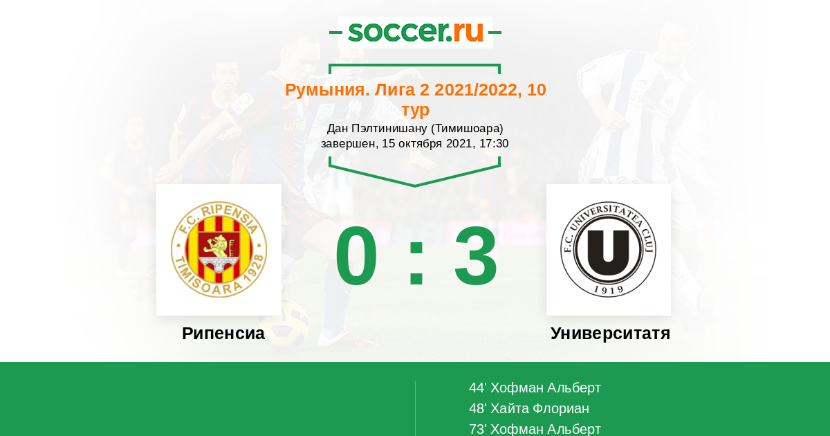 Протокол матча Рипенсиа против Университатя Клуж