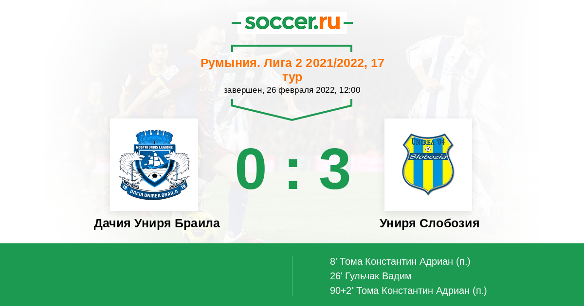 Протокол матча Дачия Униря Браила против Униря Слобозия
