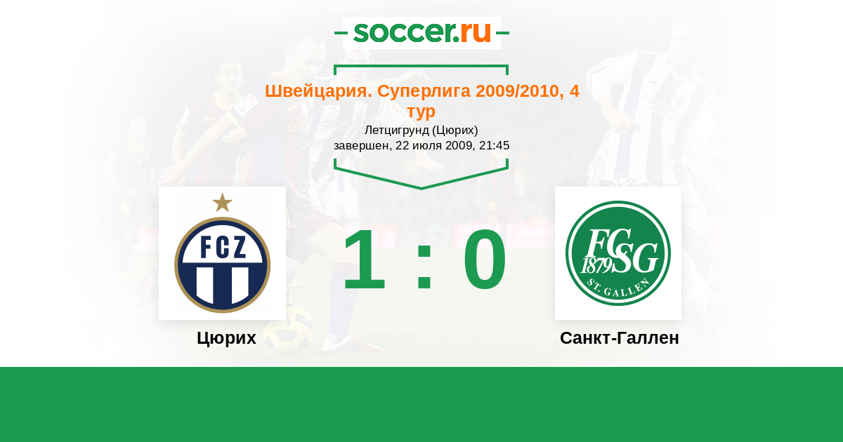 Швейцария. Суперлига 25.10.2009 Санкт-Галлен Логотип футбольный клуб Санкт-Галлен 1:3 Логотип футбольный клуб Цюрих Цюрих