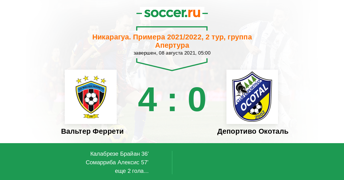 Протокол матча Вальтер Феррети против Депортиво Окоталь