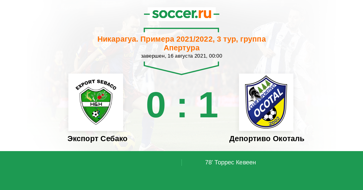 Протокол матча Экспорт Себако против Депортиво Окоталь