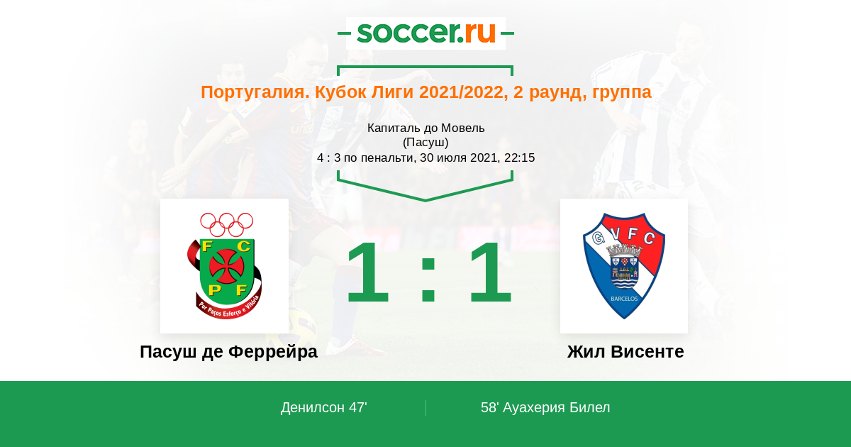 Протокол матча Пасуш де Феррейра против Жил Висенте