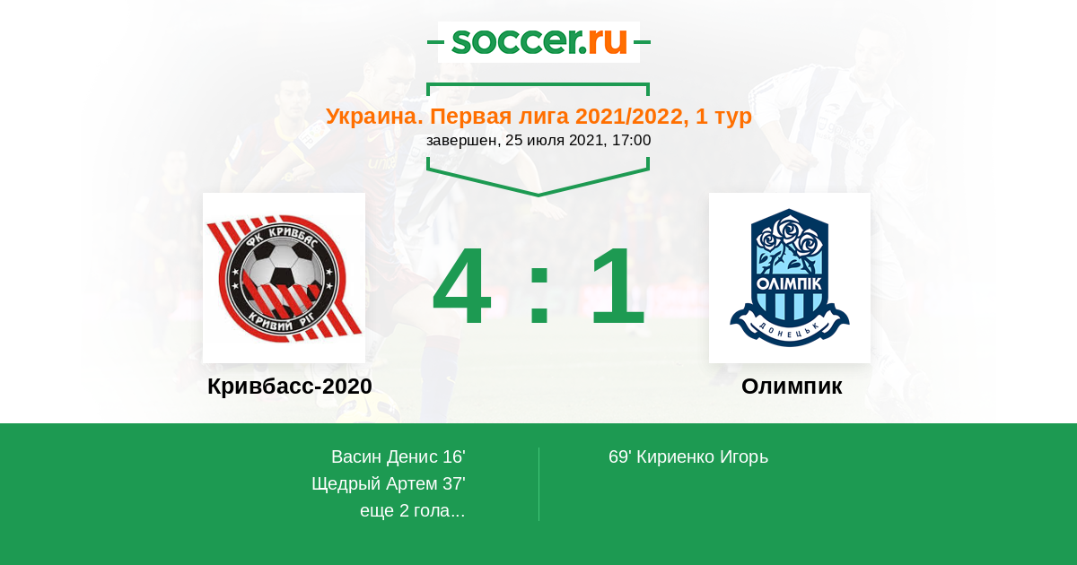 Протокол матча Кривбасс-2020 против Олимпик