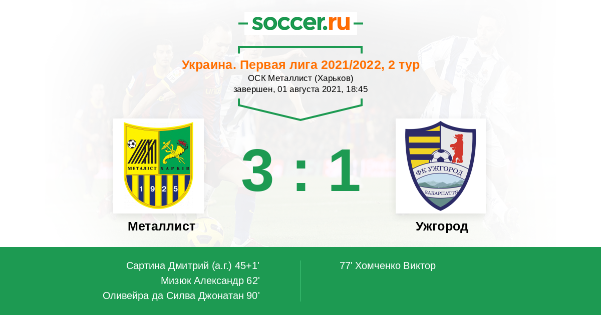 Протокол матча Металлист против Ужгород