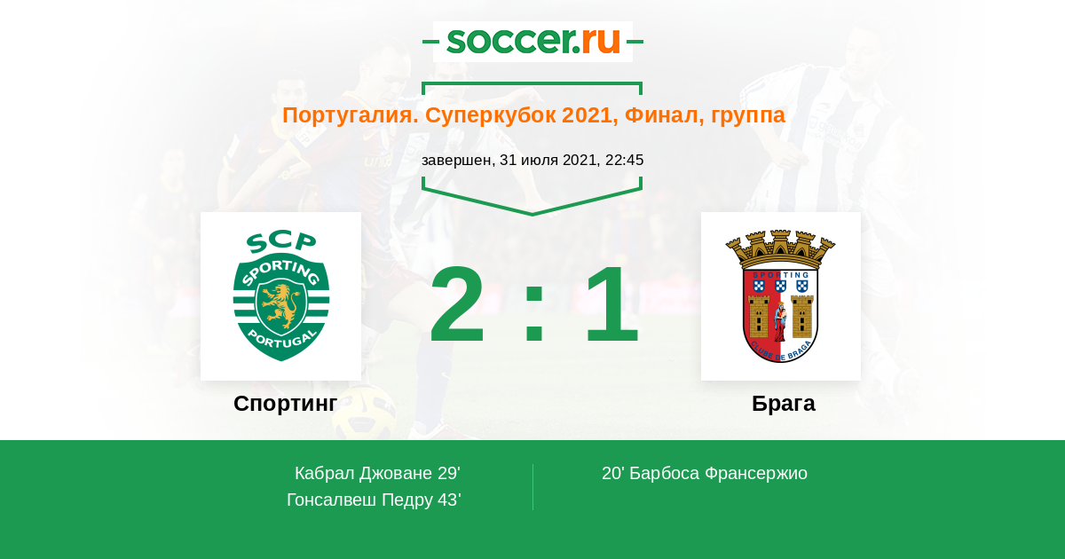 20' (0:1) Барбоса Франсержио (27) (Орта Рикарду (21))